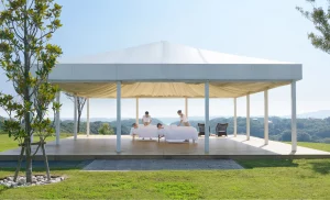 「てふてふの丘スパ」は、森と海に囲まれたNEMU RESORTの高台に建つ「ヨガテラス」で行います。