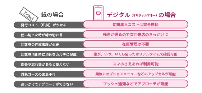 これまでエステサロンや脱毛サロン、整骨院など幅広い美容サロンへ導入頂く中で「紙の回数券やポイントカードのデジタル化」「利用状況などのアナログ管理のデジタル化」を中心に効果実感の声を多数いただいております。