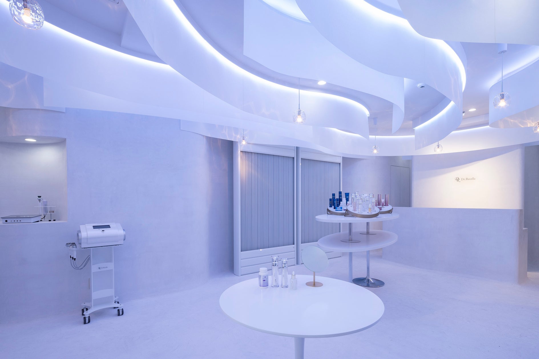 新しく生まれ変わった店内にはドクターリセラの製品をイメージしたショールームが併設されており、製品テスターをご体感いただけます。